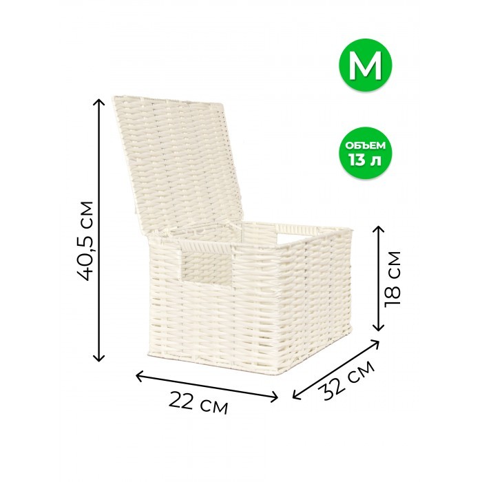 Корзина плетеная с/крыш M 320*220*180-mpl-fbo иск/ротанг, белый 265524
