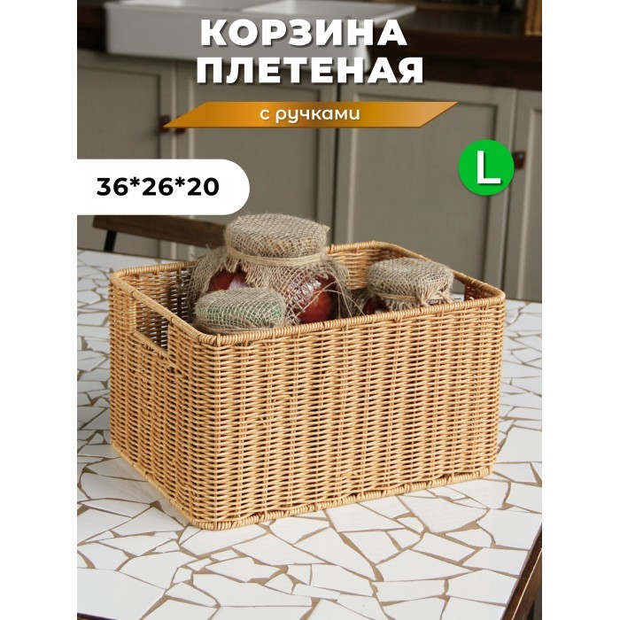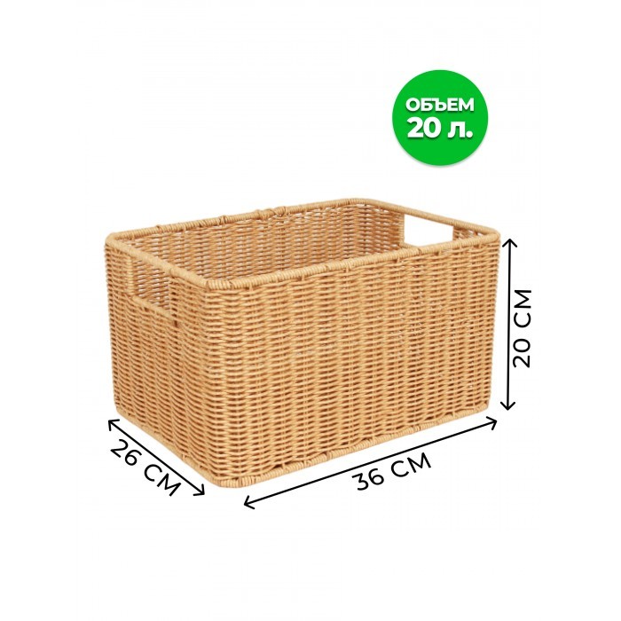 Корзина плетеная б/крышки L 360*260*200-mpl-fbo иск/ротанг, песочный 263007