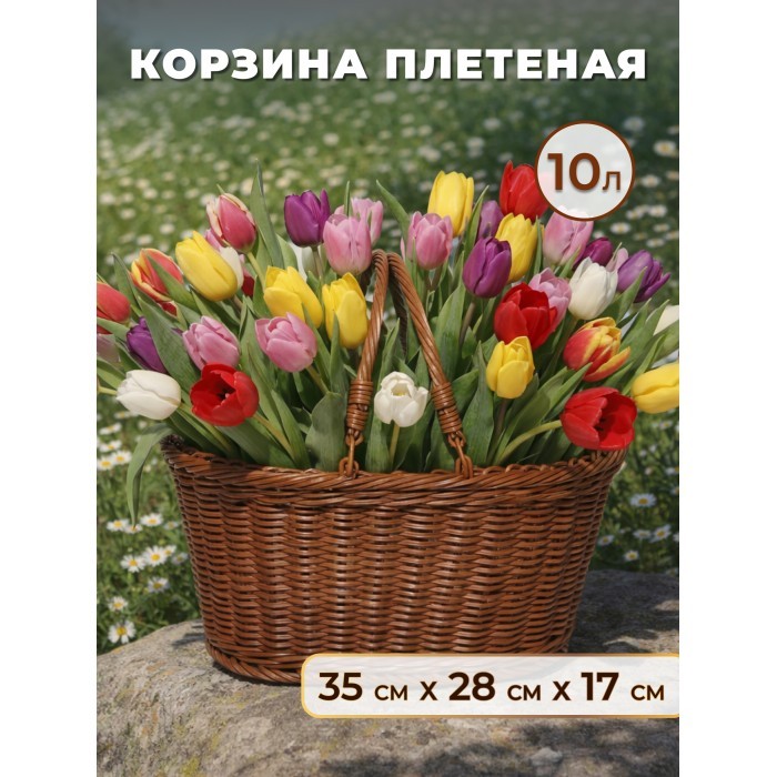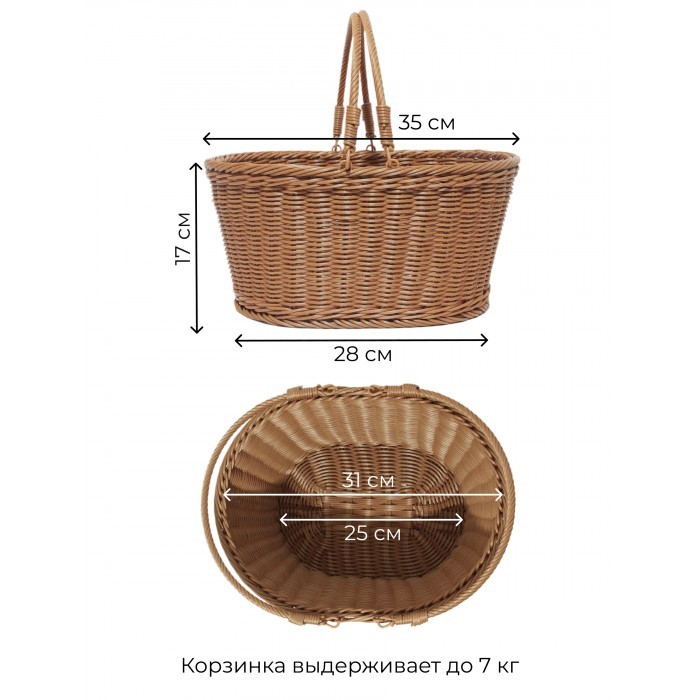 Корзина плетеная с ручками Двойное плетение большое M (2 ручки) (35*28*16 ) иск/ротанг, песочный 266363