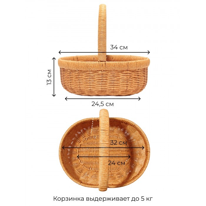 Корзина плетеная с ручками Лукошко большое M (34*27, 5*13 /32 руч ) иск/ротанг, песочный 266368