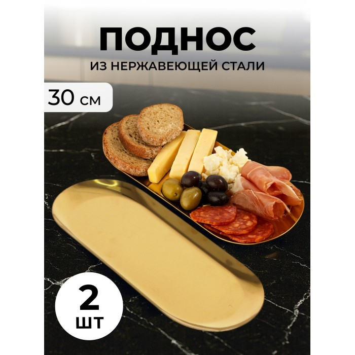 Набор подносов из нержевеющей стали 2 шт ( 30см-2шт) золото 266090
