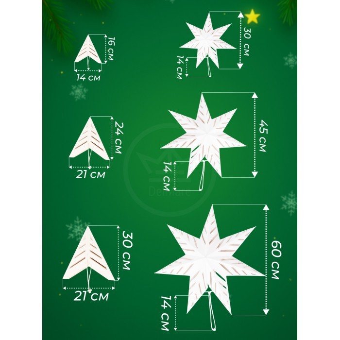 Набор Звезды Бумажные- HM-123 (30см-1шт, 45см-1шт, 60см-1шт) белый 266179