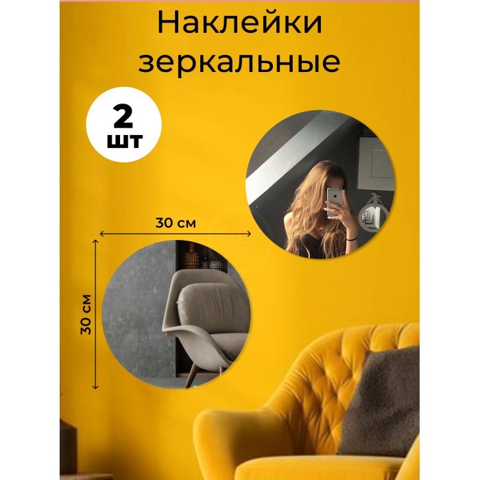 Интерьерные зеркальные наклейки Круг 2 шт ( 30*30 см) 248486