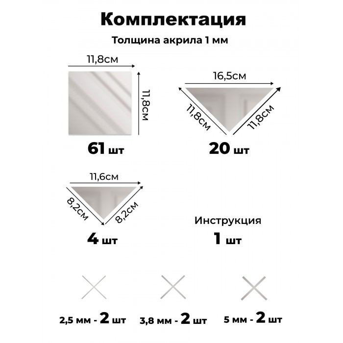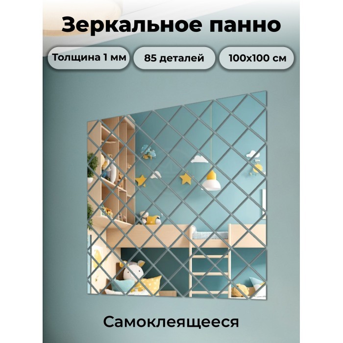 Интерьерные зеркальные наклейки Панно Квадраты 85 шт (100*100 см, толщ 1мм) 263088