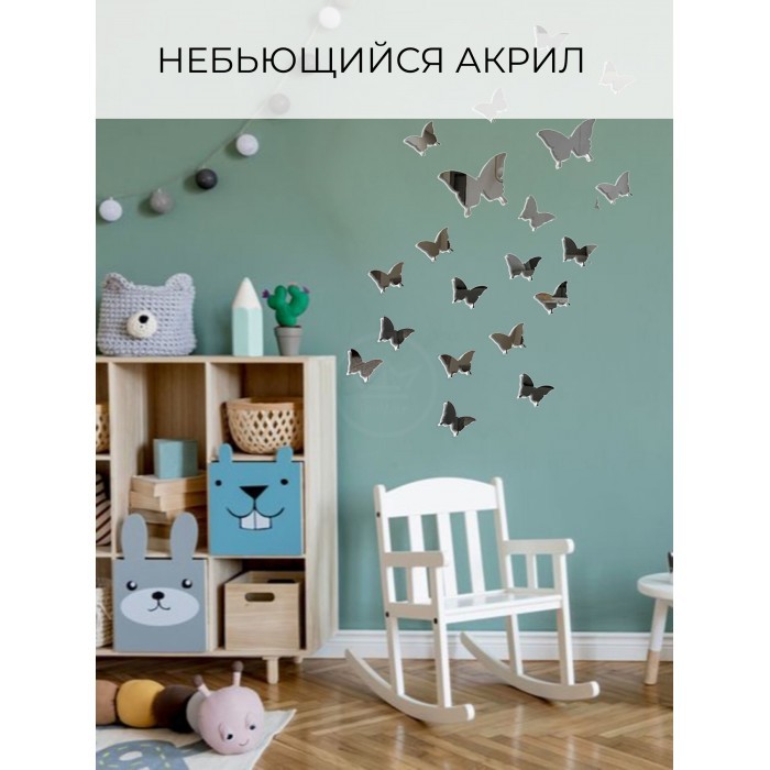 Интерьерные зеркальные наклейки Бабочки-1 набор ( 36 штук ) серебро 260031