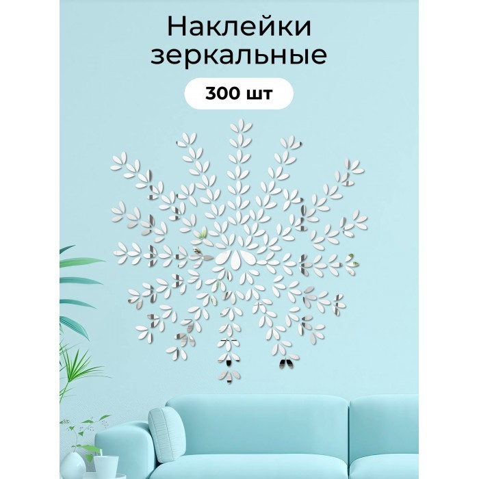 Интерьерные зеркальные наклейки Капли (300 шт) серебро 265975