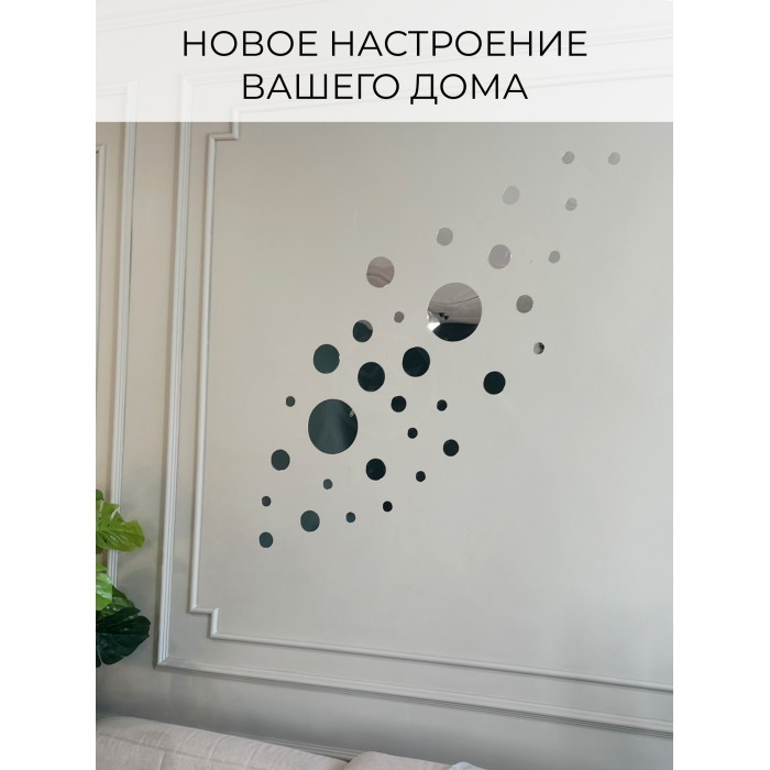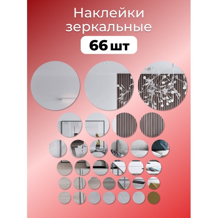 Интерьерные зеркальные наклейки Круги-2 набора ( 64/66 штук ) серебро 266105