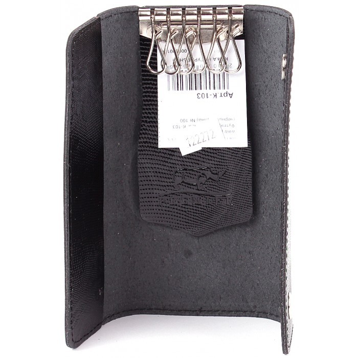 Футляр для ключей Premier-К-103 (на 6 ключей, 6*15см) натуральная кожа черный игуана (100) 122272