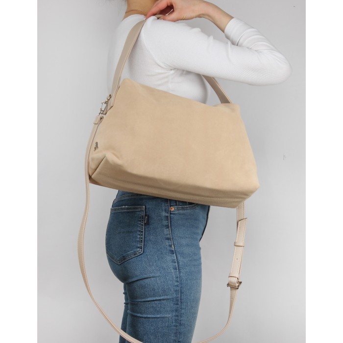 Сумка женская натуральная замша ADEL-324/2в (отделка ИСК/КОЖА), 1 отд, плечевой ремень, (УЦЕНКА/ДЕФЕКТ: черные разводы) бежевый 263734